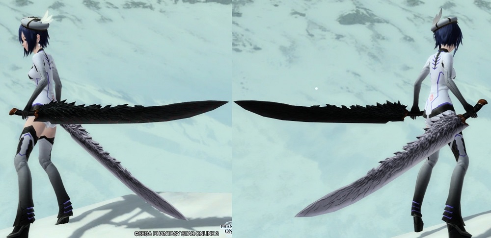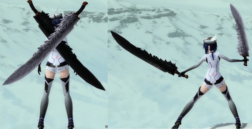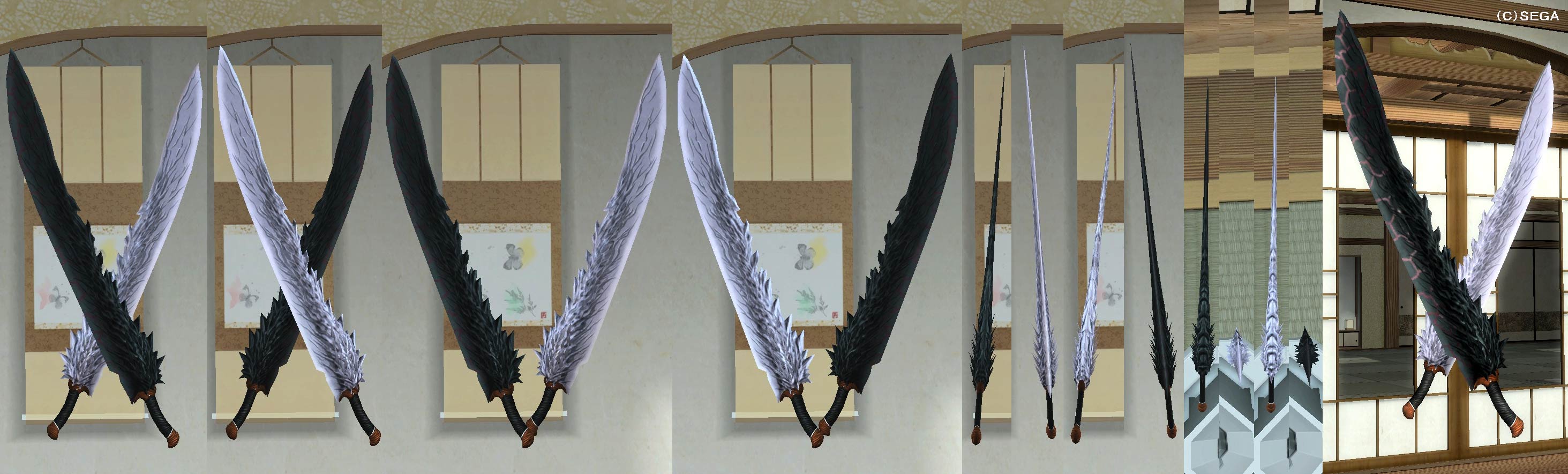 ※収納状態は両形態で同一 ※干将莫耶の莫耶(白い方)の刀身は光源等関係なく、少し赤み(薄いピンク色)がかかった色をしている。