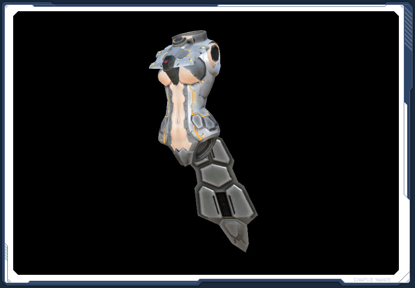 女性キャスト向けの基礎的パーツ。装甲と生体部分のバランスが絶妙で妖艶な雰囲気をまとっている。