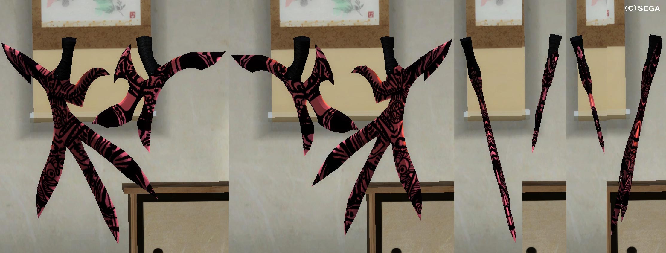 ※元から影がかかったように暗い配色で、陽の当たる場所で見ても変化無し。(暗闇での発光エフェクト等も無し)