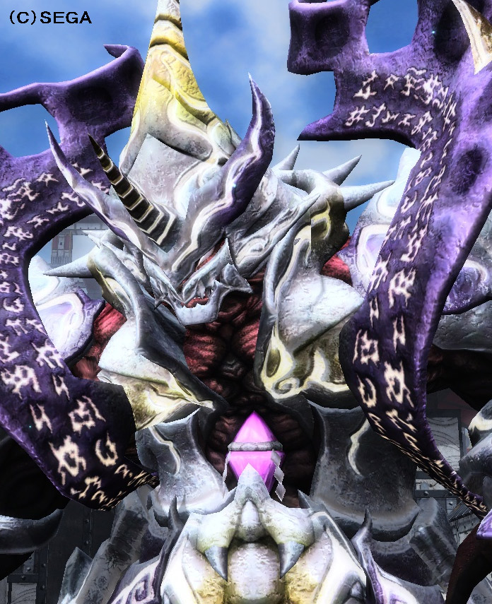 2014年08月27日実装。惑星ハルコタンの白ノ領域最奥で待ち構える鎧武者のようなボスエネミー。その巨体に似合わぬ素早い動きで動きまわる。 データ