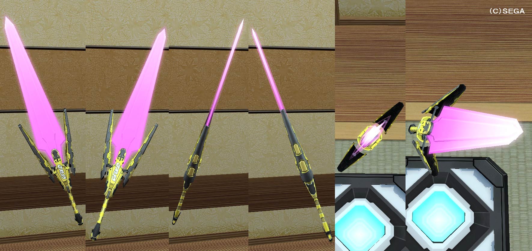 古戦場のフォトン武器シリーズ。40年前のダークファルス・エルダーやダーカー達の戦闘で使われていたと思われし武器。そのためかダーカーに強い負滅牙が付いた武器となっている。