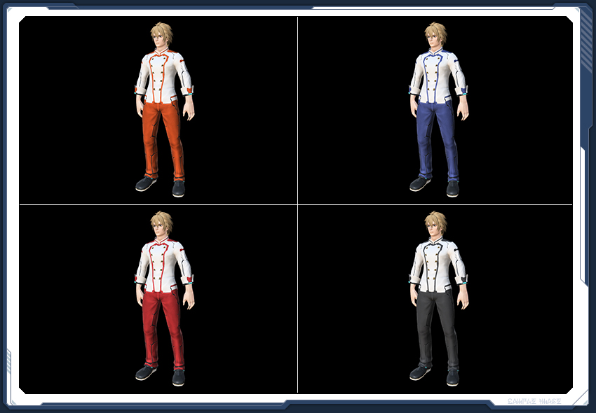 ベース色は、上半身のライン部分やズボンの色と同一。