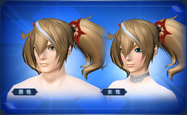 ![]() | オラキオセミロング | 備考 | 2014 03/19 | - | 女性のみ使用可能 バッヂ&メモリ交換ショップ アークスバッヂ緑×1 ※ヘアバンドは赤色固定 参考画像 ![]() 初代PSの主人公、アリサ・ランディールと同じ髪型 |