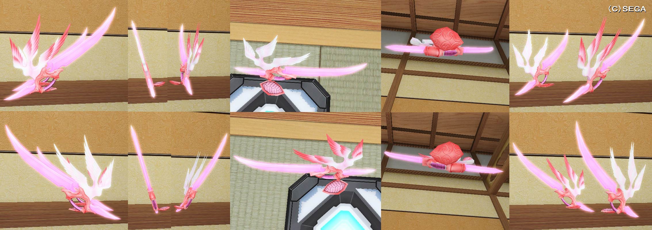 【設定6】 ※クリックで画像拡大可 装着時にほのかに光る白い羽が舞い散るエフェクト有り。また、その内の一部は消えていく過程で赤く染まっていく。