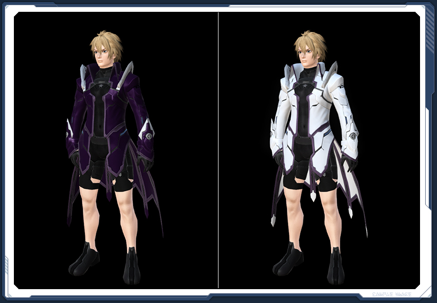 アウターのベース色反映部分は、肩や袖口パーツの刃状の部分など。 ベース色は、ネクタイやベスト、膝サイドパーツの刃状の部分などの色と同一。