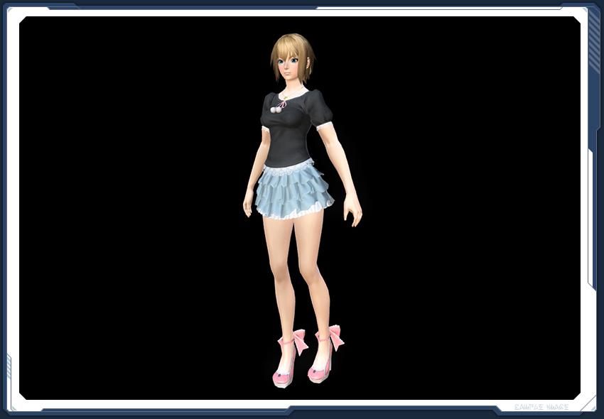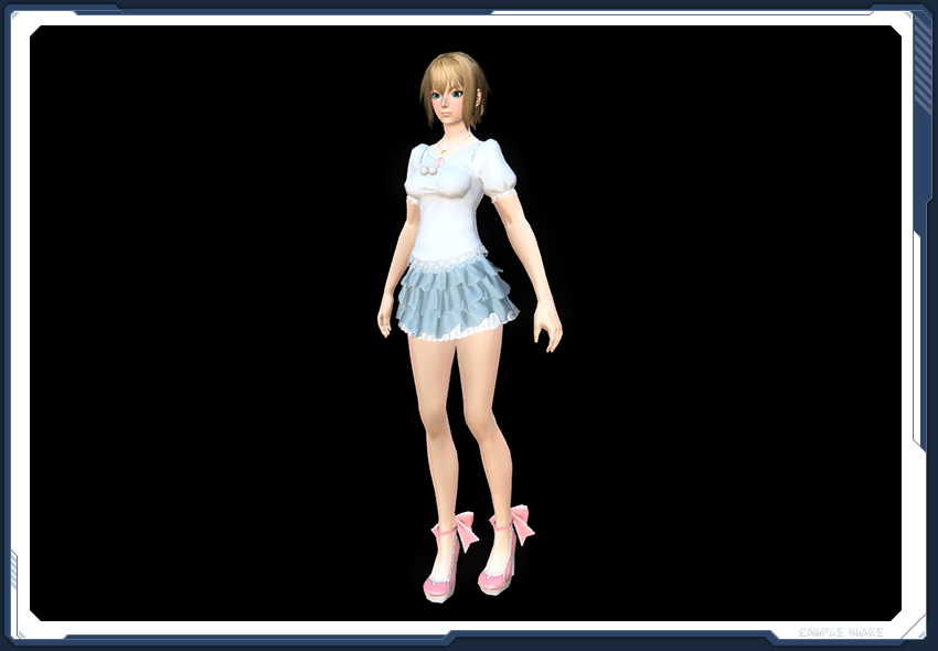ベース色は、胸元のリボンや足首のリボンや靴の地色などと同一。
