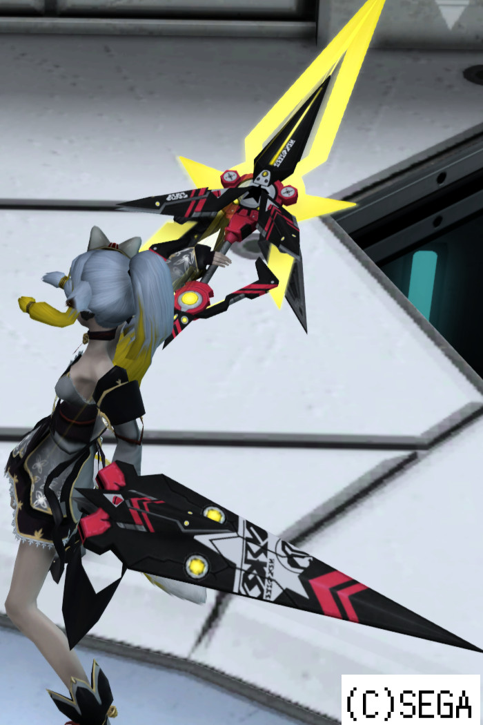 装備時の紋章エフェクトはアーレスや他のイデアルと同じ星形 攻撃時の軌跡の色は設定したフォトンカラーに合わせたものになる