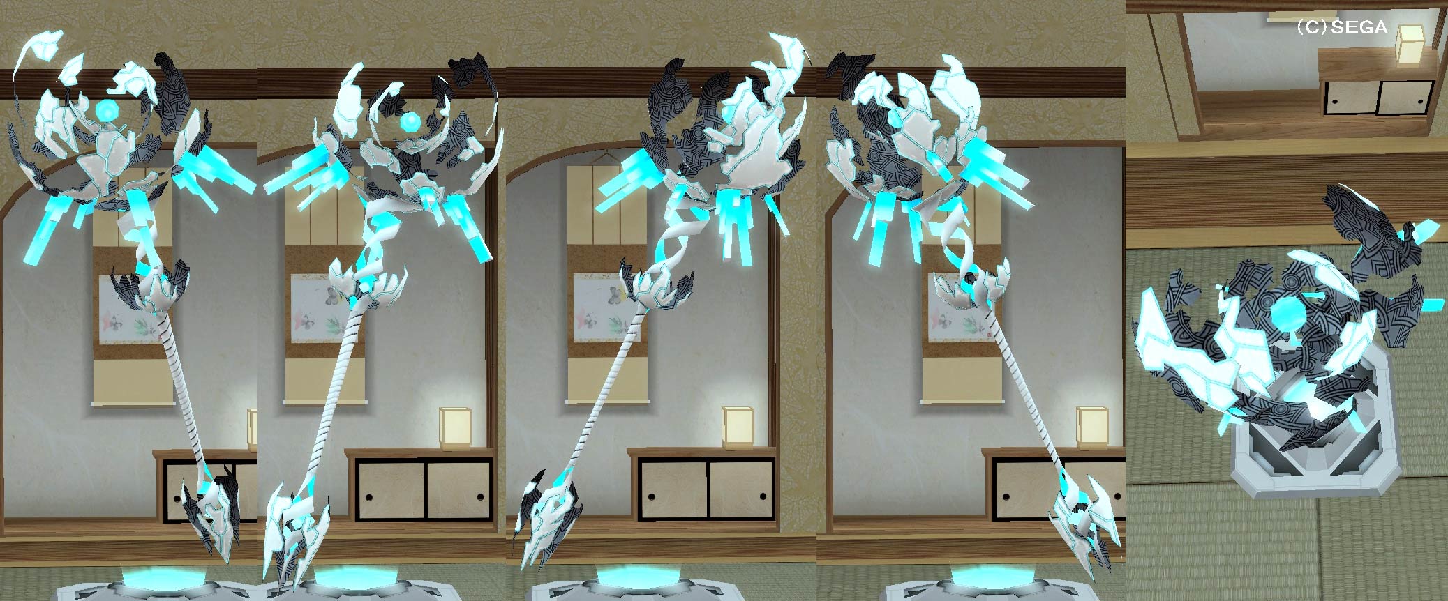 ©SEGA ※他人への販売や譲渡が出来ない武器迷彩である。 ※攻撃体勢時に先端の光玉部分から光の粒子を放つ。 ※収納時はサポートパートナー時のマトイと同様に背負う。